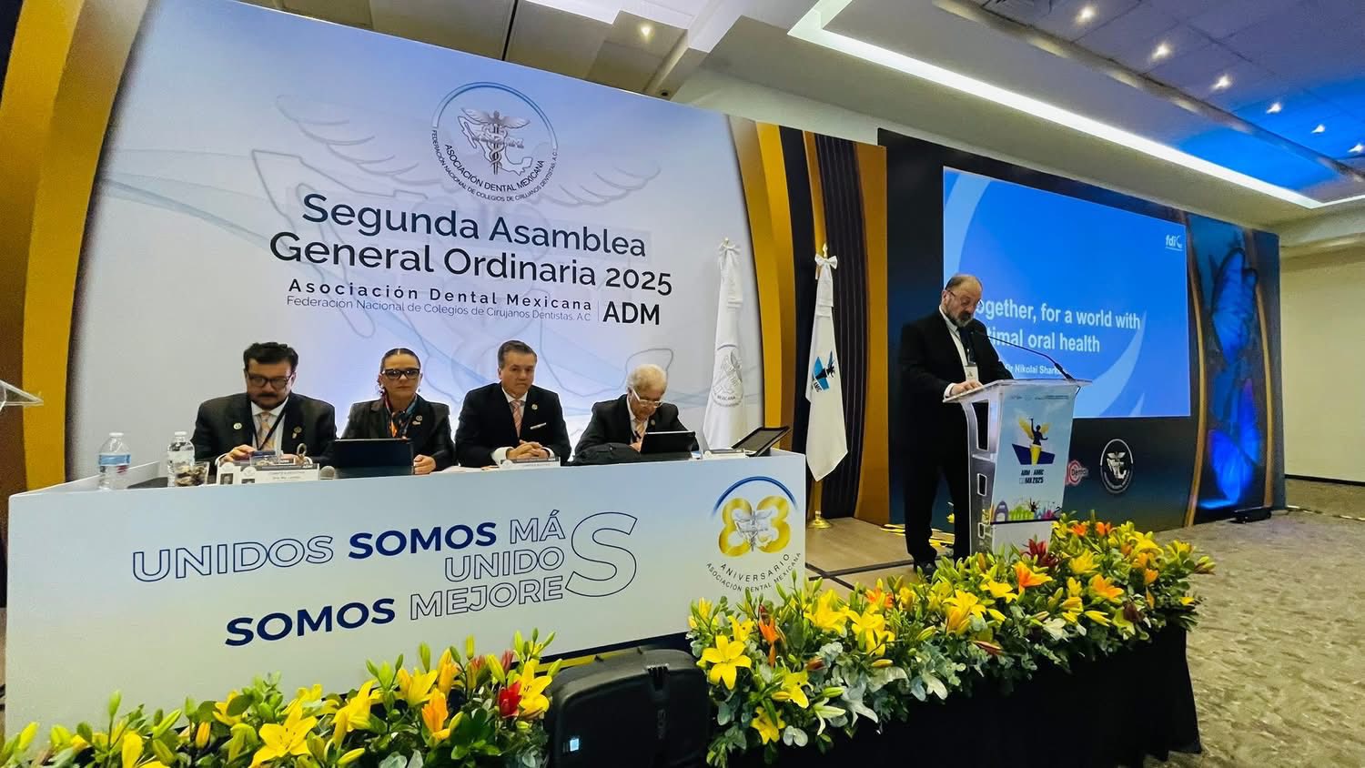 En esta ocasión tuvimos el honor de la Presencia del Presidente de la FDI World Dental Federation Dr. Nikolai Sharkov y de los Presidentes de los Colegios Filiales ADM